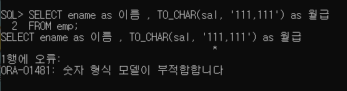 ●문자형으로 데이터 유형 변환하기(TO-CHAR)