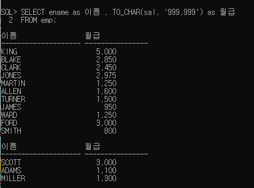 TO_CHAR은 숫자형 데이터 유형을 문자형으로 변환하거나 날짜형 데이터 유형을 문자형으로 변환 할 때 사용
