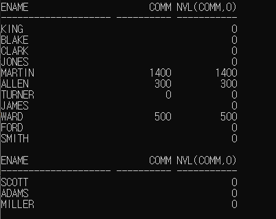 comm(커미션)이 0이 아닌 사원들은 그대로 출력, 커미션이 NULL인 사원들은 NULL 대신 0이 출력된다