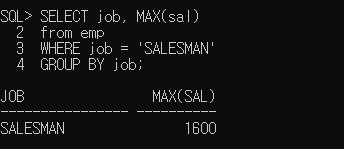 -> job 칼럼의 값은 여러개의 행이 출력되려고 하는데 MAX(sal)값은 하나만 출력되기 때문에