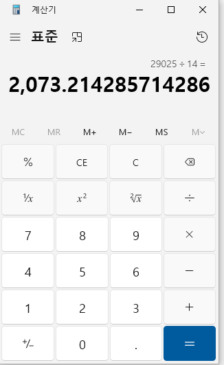 계산기와 같은 값이 나왔다