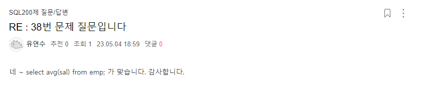 | SQL 10(COUNT 건수 출력하기) (0) | 2023.05.08 |
