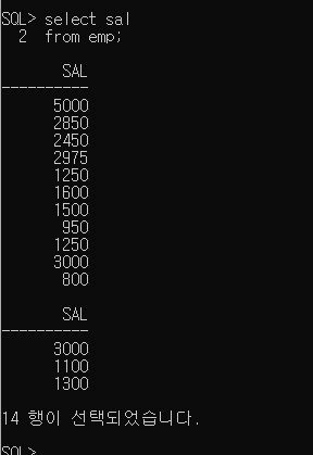 테이블에 입력이 잘못되어있는지 보려고 sal을 모두 출력해서 직접 계산해봤다