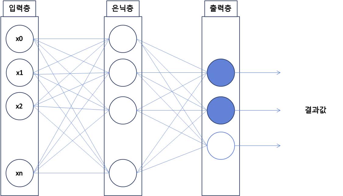 - 입력층,은닉층,출력층으로 구성