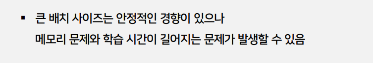 >> (질문) ppt에서 배치사이즈 클 수록 학습 시간이 길어지는 경향/ 메모리 문제 ?