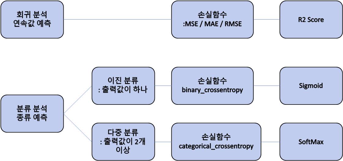 model.add(Dense(1, activation='linear')) # 회귀모델에서 인풋과 아웃풋 활성화함수는 'linear'