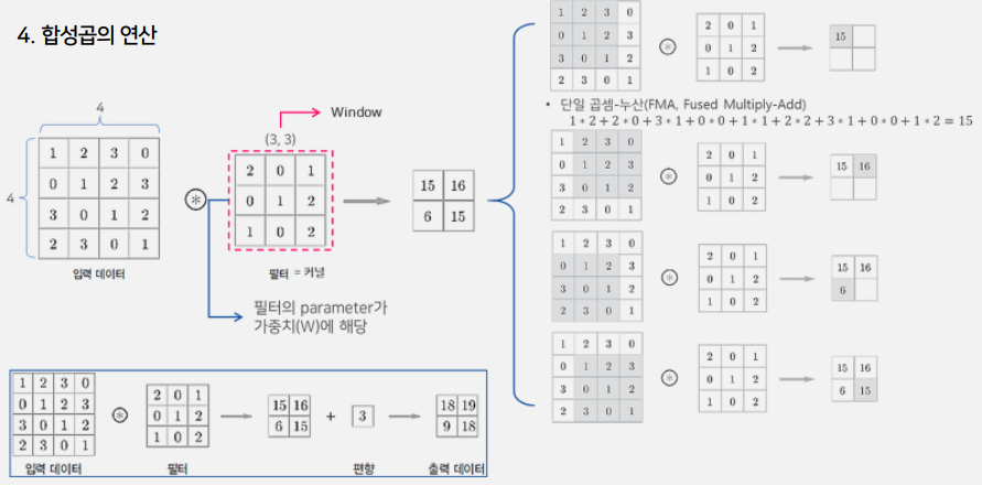 - 필터가 합성곱층에서의 가중치 파라미터(W)에 해당