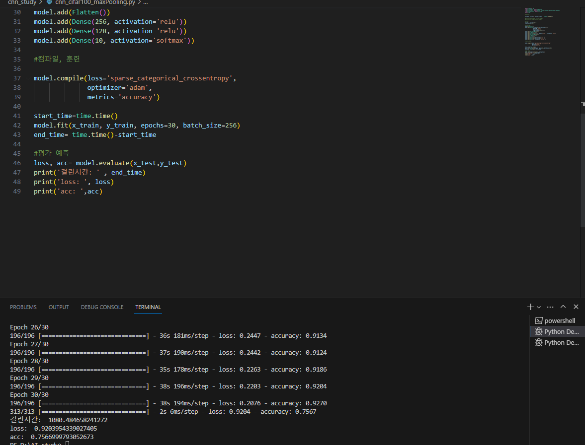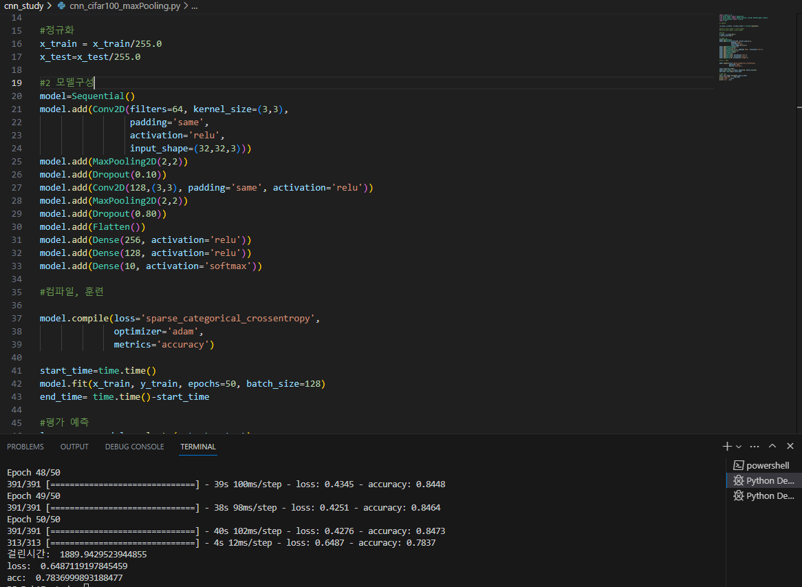 ●maxpooling (maxpooling, dropout 추가)