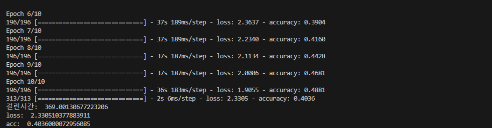 ▶너무 높은 loss와 부정확도 때문에 코드를 좀 더 정확하게 나오게 해보려고 고쳐보았다