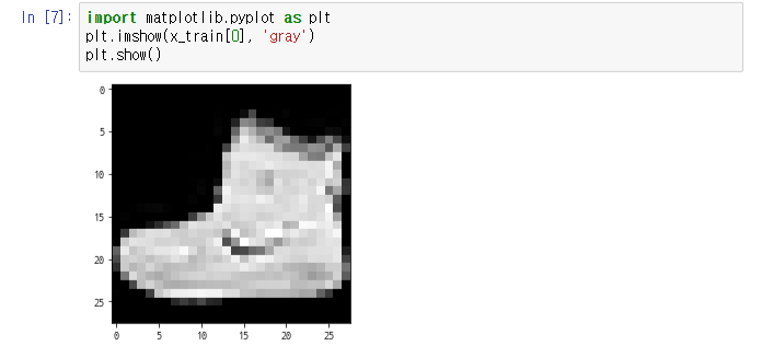 - 이미지는 0∼255 사이의 값을 갖는 28x28 크기의 NumPy array
