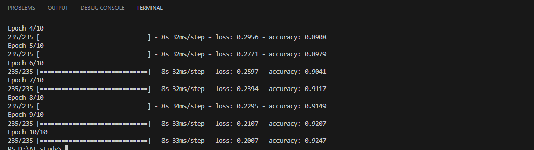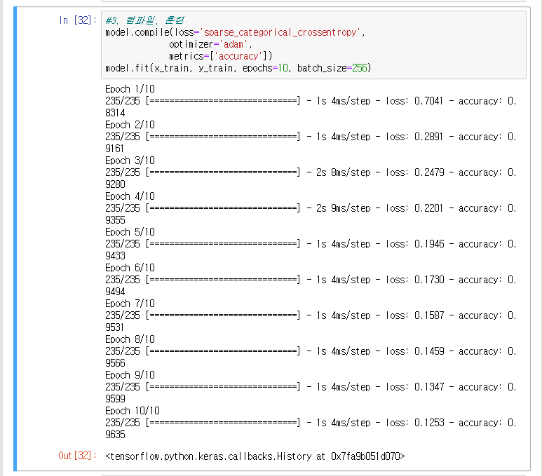 model.fit(x_train, y_train, epochs=10, batch_size=256)