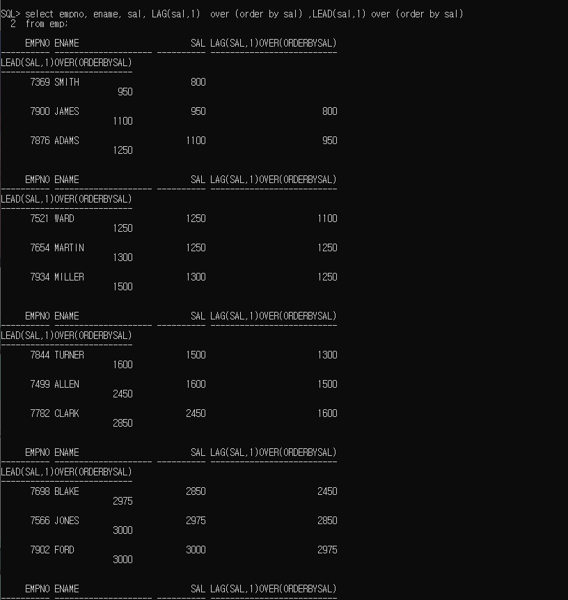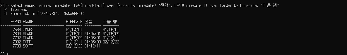 lag(hiredate,1) over (partition by deptno order by hiredate) "전행"'SQL' 카테고리의 다른 글