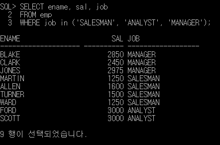 = (job = 'SALESMAN' or job=' ANALYST or job=' MANAGER')