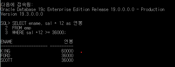 1.연봉이 36000 이상 사원들의 이름과 연봉 출력