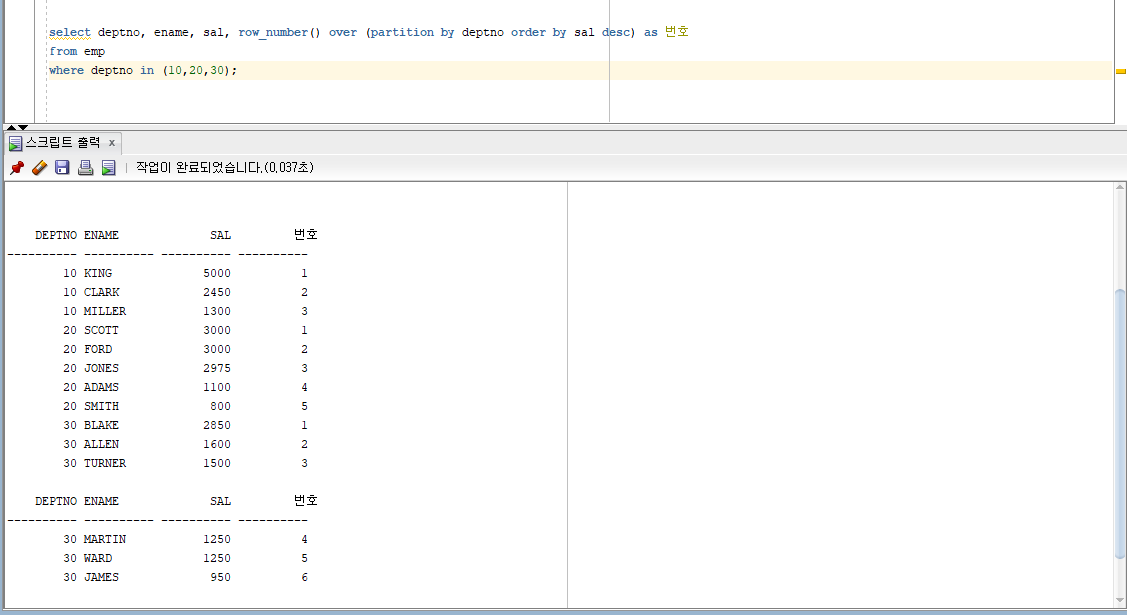 pseudocolumn인 rownum과 유사하며 rank , dense_rank의 분석함수와는 다르다