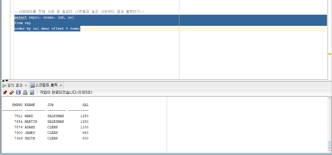 ● 사원테이블 전체 사원 중 월급이 10번째로 높은 사원부터 결과 출력하기