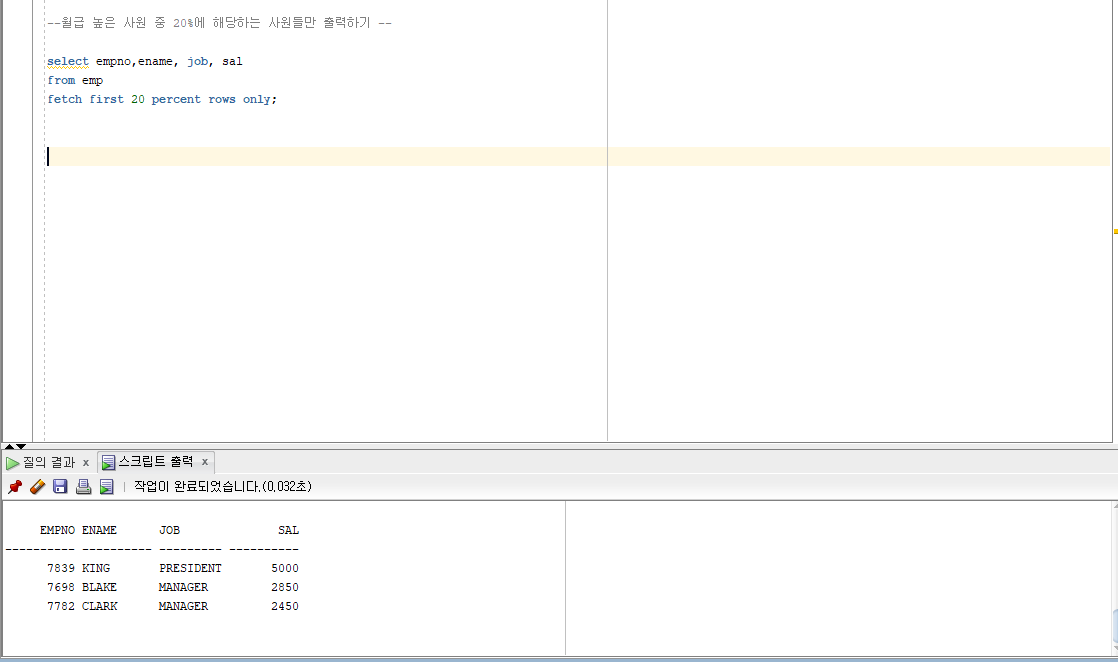 fetch first 20% rows only는 % 기호로 인해 에러발생